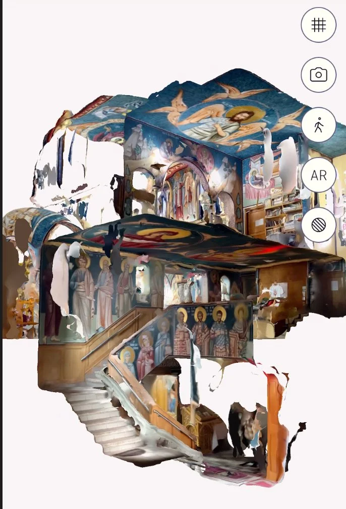 Polycam. A screen recording of a 3D environment scan. The rendering is raw and wasn't yet processed for image accuracy.